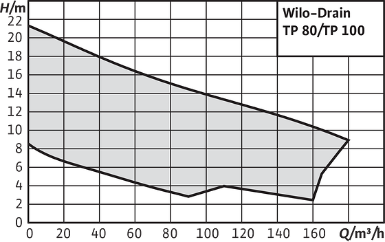| Drain TP 80E160/17 | 9,00 m | 75 m³/h | 66,39 m³/h | 6,40 A | 1,70 kW |